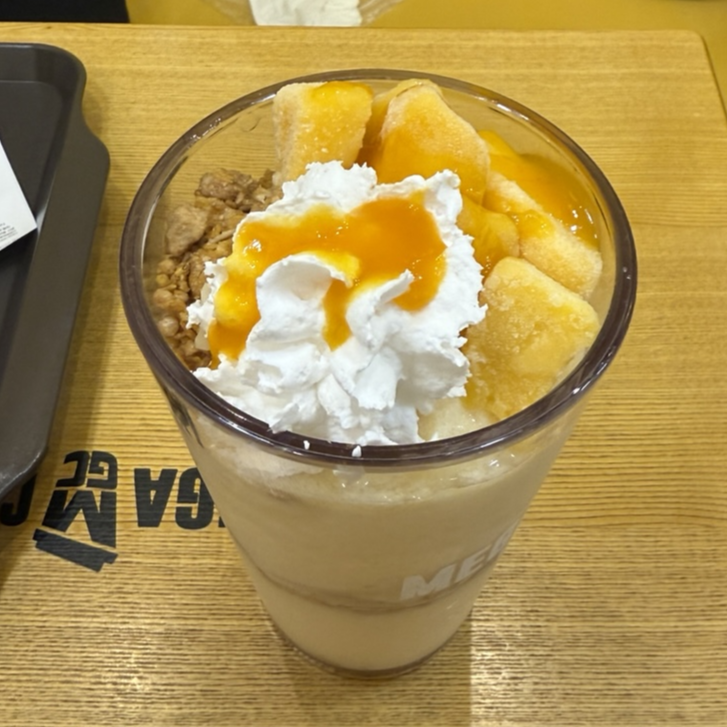 망빙 파르페는 망고, 코코넛칩, 시리얼 그리고 휘핑크림이 들어가 있고 망고요구르트가 베이스로 깔려 있어요!