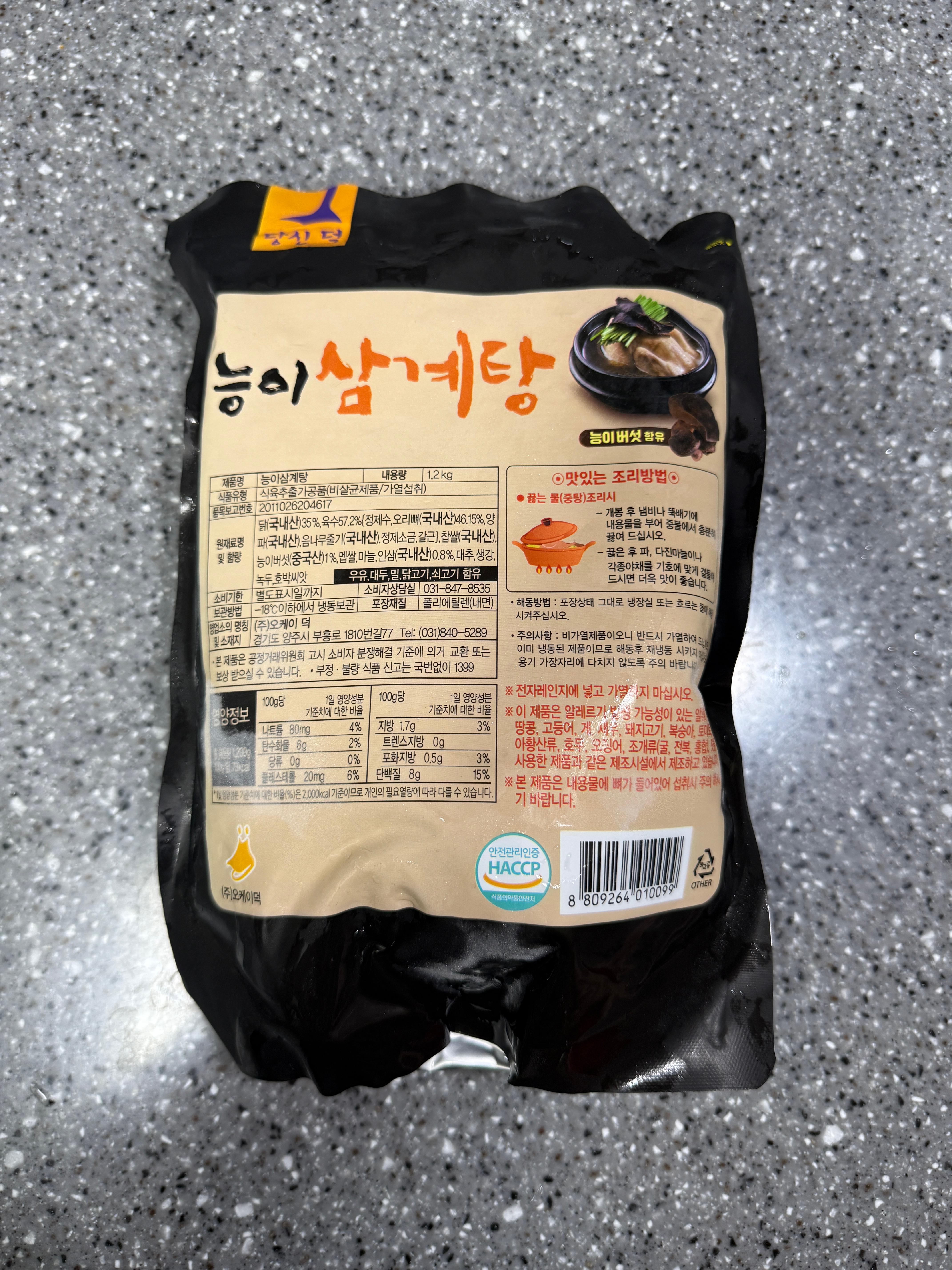 삼계탕은 한 팩 1.2kg으로 1~2인분으로 구성되어 있고,